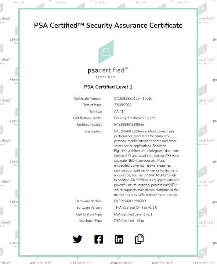 RK3399Pro及RK3399通過Arm平臺安全架構PSA認證