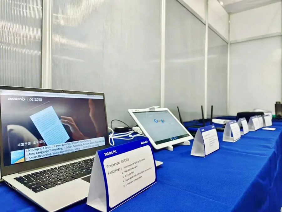 現(xiàn)場(chǎng)展出了系列搭載新一代AIoT旗艦芯RK3588的產(chǎn)品包括AR、游戲盒子、高端平板、Arm PC、邊緣計(jì)算盒子等應(yīng)用,海外用戶對(duì)RK3588的強(qiáng)大的算力及8K顯示性能有更直觀的體驗(yàn)。