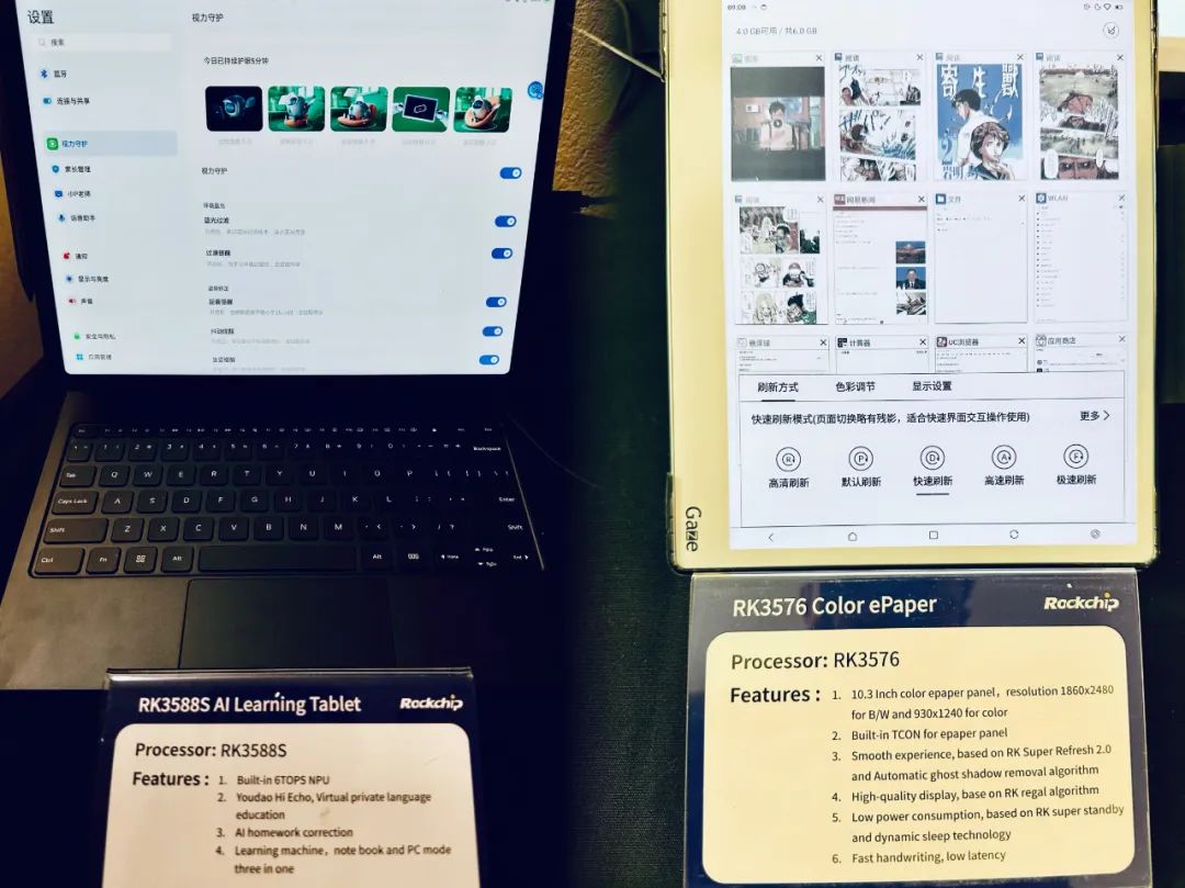 同時(shí)還有最新搭載RK3576的電子書產(chǎn)品和桌面機(jī)器人,電子書包括傳統(tǒng)黑白電子紙及彩色電子書,具有超低功耗、手寫低延時(shí)的優(yōu)勢,同時(shí)基于RK自研的Auto Clear和連續(xù)刷新算法,有效去除快刷殘影,相比傳統(tǒng)快刷方案,基于瑞芯自研的快刷算法,RK3576方案速度提升2.5倍,視頻播放幀率可達(dá)22fps,網(wǎng)頁滑動及閱讀翻頁絲滑流暢。