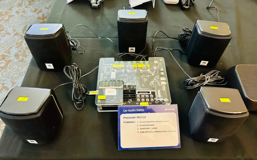 采用RV1106B的AI智能眼鏡備受關(guān)注,支持錄制最高 500萬 30FPS視頻,拍照達(dá)1200萬,集成多幀降噪、HDR拍攝、EIS電子防抖、暗光增強(qiáng)等技術(shù),全方位提升影像品質(zhì)。2M視頻功耗250mw,待機(jī)功耗低至2mw。智能音頻展區(qū)展出了采用RK3308和RK2118的系列音頻產(chǎn)品,包括Party Box、汽車音頻、Soundbar等應(yīng)用,基于瑞芯微自研的人聲及樂器分離算法,能實(shí)現(xiàn)多種音頻的音軌分離,從而滿足k歌,樂器演奏等產(chǎn)品需求;也可以結(jié)合瑞芯微環(huán)繞音效算法,提供精準(zhǔn)的中置聲道人聲增強(qiáng)和立體環(huán)繞聲場效果。