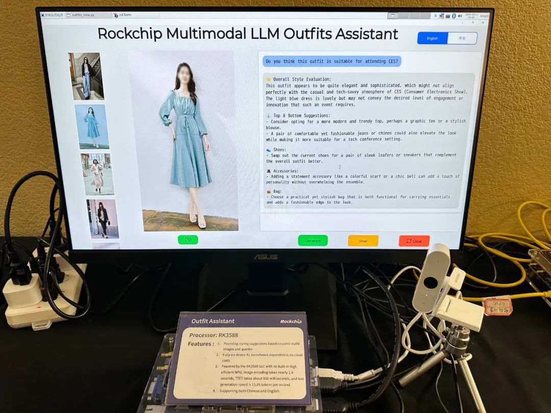 AI算法展區(qū)展示的是最新推出的基于RK3588的智能助手及穿衣助理。智能助手利用端側(cè)運(yùn)行的LLM模型,可以解答各類問詢,提供檢索增強(qiáng)技術(shù)模塊,可以通過添加不同的產(chǎn)品文檔秒變各類產(chǎn)品專家;集成了ASR和TTS算法,讓用戶可以與其進(jìn)行語音對話;并支持?jǐn)?shù)字人技術(shù),體驗(yàn)沉浸式交互。穿衣助理是基于一個本地運(yùn)行的多模態(tài)大模型,它可以根據(jù)用戶上傳的照片或信息,快速分析用戶的風(fēng)格偏好,并提供多種穿搭組合;響應(yīng)迅速,實(shí)時(shí)提出建議,可應(yīng)用在智能家居及個人助手智能設(shè)備領(lǐng)域。