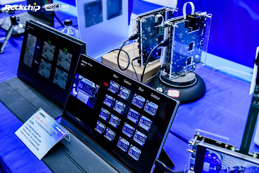 機(jī)器視覺展區(qū),瑞芯微智慧視覺芯片產(chǎn)品矩陣首次完整展出,包括通用型AI芯片矩陣RV1126B,經(jīng)濟(jì)型視覺AI芯片RV1103、RV1106 RV1103B RV1106B,旗艦型視覺AI芯片RK3588、RK3576以及后端智能處理芯片RK182X、RK3588、RK3568、RK3576,以及瑞芯微核心自研技術(shù)包括AI-ISP、黑光全彩、AI降噪、AOV低功耗快啟、智能壓縮編碼、AI檢測、去運(yùn)動模糊、動態(tài)拼縫、雙目融合拼接、數(shù)字防抖等。