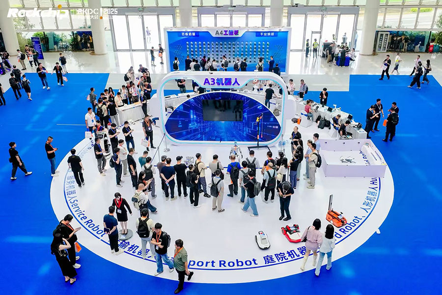 作為今年特色展區(qū)之一的機(jī)器人展區(qū),展出的機(jī)器人種類豐富程度歷屆之最,基于RK3588、RK3576、RK3568、RK3562、RK3566、RV1126等方案,包括清潔類的掃地機(jī)器人、割草機(jī)器人,服務(wù)類的迎賓/送餐機(jī)器人、中醫(yī)健康服務(wù)機(jī)器人、物流倉儲機(jī)器人、機(jī)械臂,陪伴類的下棋機(jī)器人、桌面機(jī)器人等,更首次重磅展出采用瑞芯微芯片作為小腦中樞的具身機(jī)器人和機(jī)器狗。